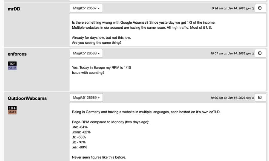 We’re seeing widespread reports of 50–70% drops in eCPM and RPM across AdSense accounts, even though traffic hasn’t changed. Same pages, same US-heavy audiences. The only thing different is the revenue. Some publishers are saying today’s RPM is half of yesterday’s. Others are seeing 80–90% collapses compared to earlier this year.
