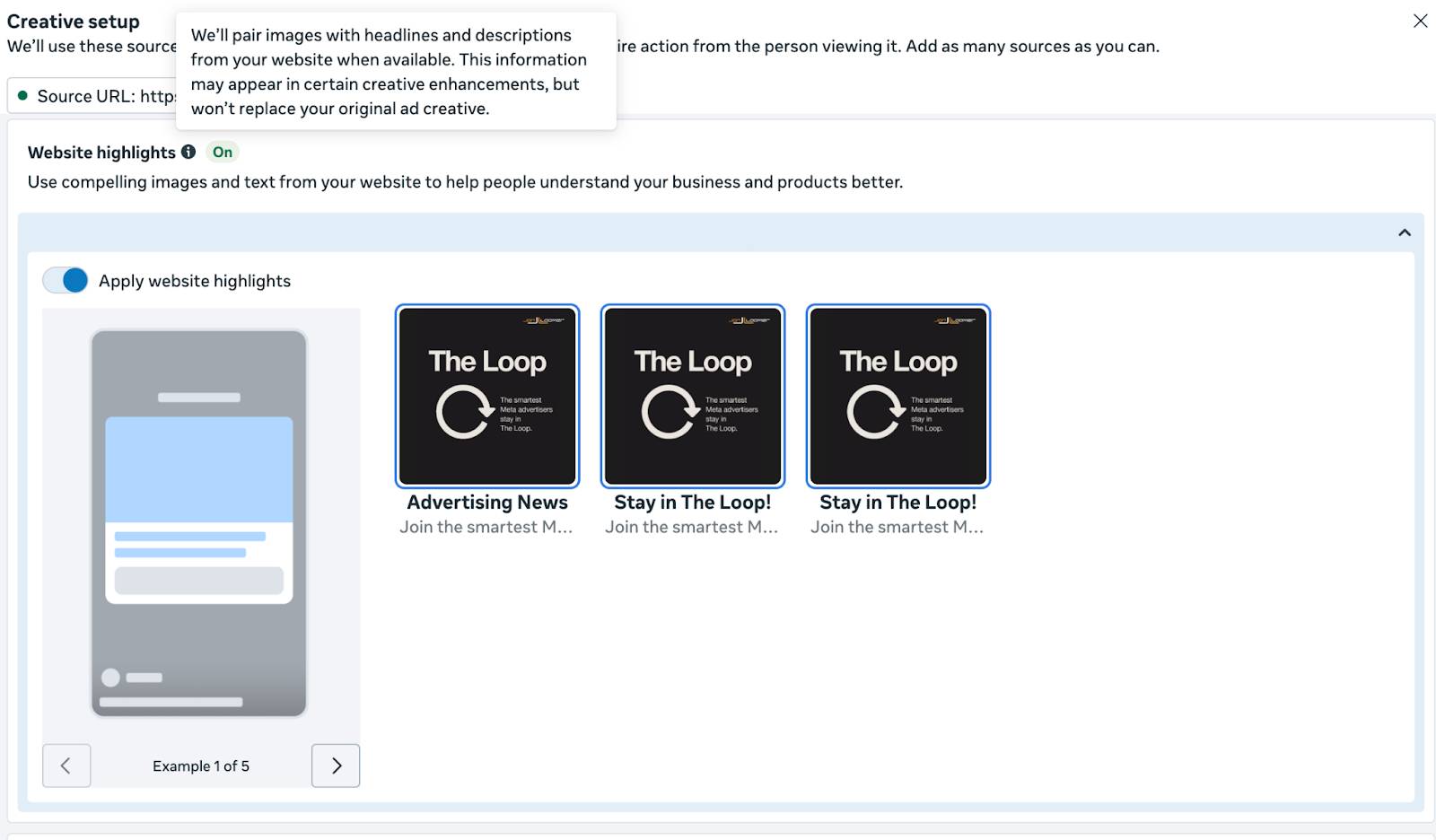 Now they’ve added a manual override. You can turn Website Highlights off entirely or review every highlight Meta selected and keep only what you want. No more random pull quotes.